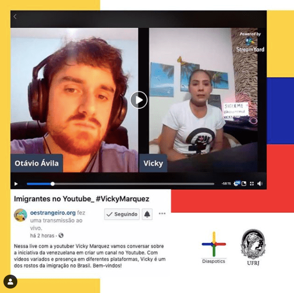 Durante uma hora em transmissão ao vivo pela página do oestrangeiro.org no Facebook, conversamos com Vicky Márquez, venezuelana que reside no Brasil há quase 4 anos e criou um canal no Youtube contando sobre suas experiências no país de imigração.