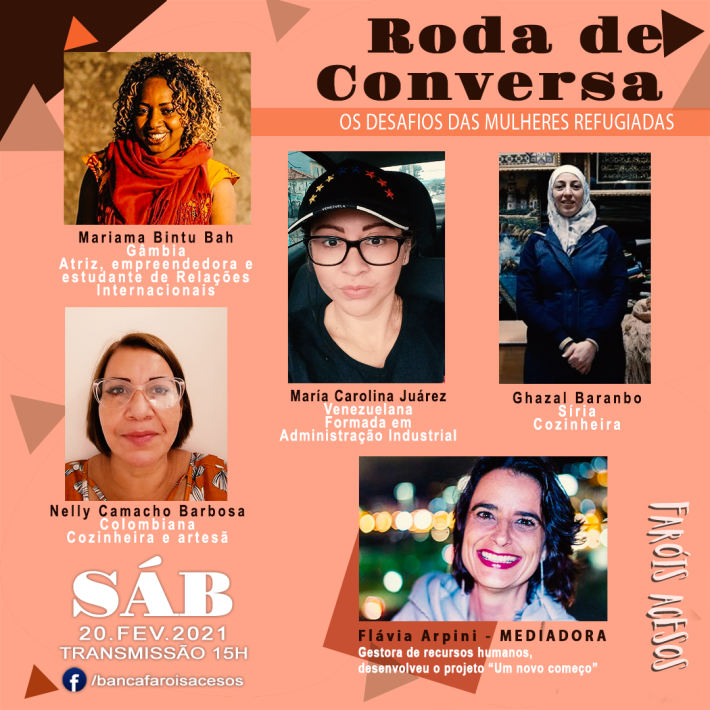 Diante destes números fui convidada para realizar uma roda de conversa de um projeto chamado Faróis Acesos, cujo tema seria Os Desafios das Mulheres Refugiadas. Nesta roda estavam presentes três mulheres imigrantes refugiadas provenientes de Gâmbia, da Venezuela e da Síria. A primeira há cinco anos no Rio de Janeiro, a segunda há três anos, e a terceira há sete anos e residindo na cidade de São Paulo.