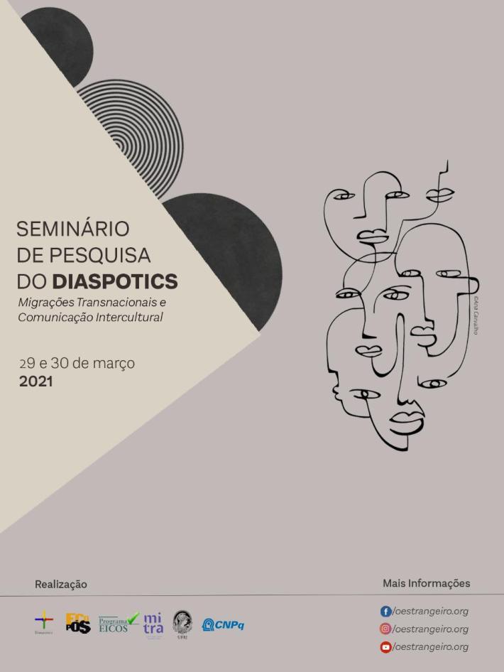 O grupo de pesquisa Diaspotics realiza nos dias 29 e 30 de março, das 15h às 19h e das 18h30 às 22h15, respectivamente, o Seminário de Pesquisa do Diaspotics: Migrações Transnacionais e Comunicação Intercultural. O evento, que é parte da retomada do ano letivo do Programa de Pós-graduação em Comunicação e Cultura da UFRJ (PPGCOM/UFRJ), acontece no formato online no canal do YouTube oestrangeiro.org e é aberto ao público.