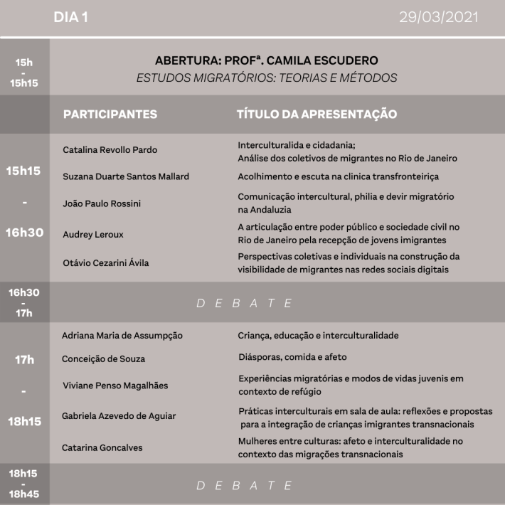 Sessão 1 – Mediação: Camila Escudero (Metodista)