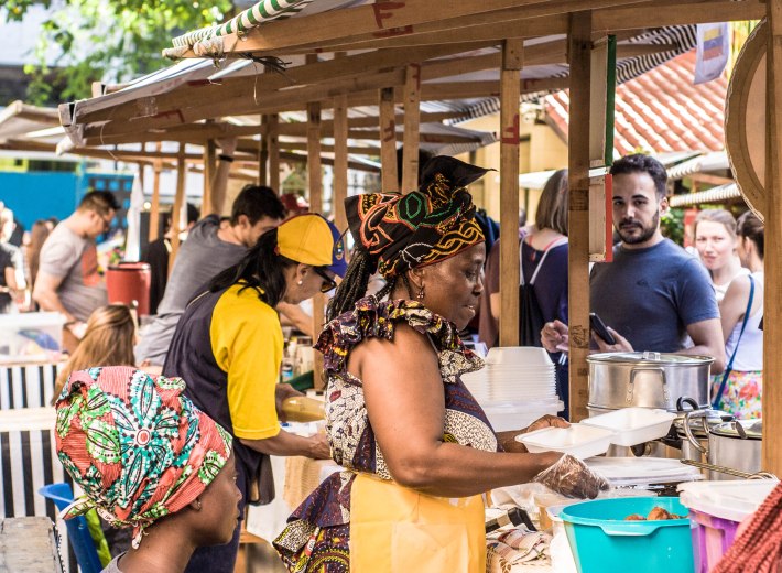 A Feira Chega Junto acontecia um sábado por mês no bairro de Botafogo, na zona sul carioca, até a pandemia paralisar as atividades. Desde então, voluntários da feira têm se mobilizado para garantir atividades que deem aporte financeiro aos migrantes e refugiados que comercializavam seus produtos no evento cultural. Aos que ainda não conseguiram trabalho ou cuja renda não é insuficiente, os voluntários pedem cestas básicas para auxílio.