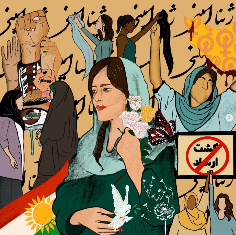 O trágico ocorrido com a jovem Mahsa relembrou traumas das migrantes iranianas, de quando ainda viviam no país. Neda Amini², que desde 2015 reside no norte da Europa, conta sobre sua reação quando leu as notícias: “Fiquei com muita raiva, ela foi morta na mesma delegacia para onde fui levada duas vezes. O trauma de ter sido detida por conta de uma aparência não aprovada pelo governo veio à tona. Eu imaginei que isso poderia ter acontecido comigo, com minha irmã e com minhas amigas. Esse tipo de coisa pode acontecer com qualquer mulher iraniana”. Parvaneh Amini³, que vive no Brasil há mais de 20 anos, diz: “Me senti indignada, extremamente triste, com raiva e ódio. Diariamente, ao acordar, checo as redes sociais para ver as notícias sobre o Irã e já começo chorando na cama de tristeza. Por um lado fico muito triste porque a cada dia morrem mais jovens e acontecem mais torturas e todos os tipos de abuso, mas por outro lado fico feliz que não desistiram e estão resistindo”. A morte da jovem foi o estopim para imensos protestos, dentro e fora do Irã. Com o slogan “Mulher, Vida, Liberdade”, iranianas no país e no exterior enchem as ruas exigindo punição para os responsáveis pela morte de Mahsa, o fim da perseguição às mulheres e a queda do governo religioso. No último sábado, dia 01 de outubro, grandes atos aconteceram em 150 cidades ao redor do mundo. Shirin Amini⁴, que migrou para os Estados Unidos em 2015, participou nessa data e em outras duas, além de ter colaborado na construção de um memorial em homenagem à Mahsa na universidade onde trabalha.