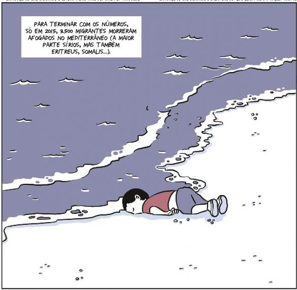 Há também um forte tom pejorativo associado à palavra “caricatura”, ainda que uma de suas definições seja apenas “a reprodução deformada de um objeto, um indivíduo ou situação”. Evidentemente, é possível utilizar-se de charges e HQs para se produzir ataques xenofóbicos e racistas contra refugiados e imigrantes, como recorrentemente foi feito desde a popularização das caricaturas de jornal no final do século XIX e início do XX e segue sendo feito em jornais reacionários e em certas partes da internet. Entretanto, pode-se também usá-las para trazer a humanidade para primeiro plano ou, mesmo, ressaltar um tópico que está sendo ignorado ou pouco discutido em relação a temas sensíveis, difíceis, constrangedores e até violentos como guerras, massacres e catástrofes. Por esta perspectiva, a caricatura, ou cartum, torna-se, como pontua McCloud (1995, p.38) “um vácuo para o qual nossa identidade e consciência são atraídas… uma concha vazia que nós habitamos pra viajar a um outro reino. Nós não só observamos o cartum, nós passamos a ser ele.” [1]