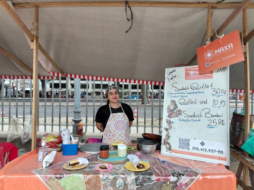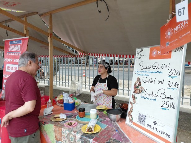 O seu negócio passou por um processo de branding recente e assumiu o nome “Maxa: culinária persa afetiva”. O logo laranja e branco lembra uma mandala, e com a inscrição “Mahsa” na bonita caligrafia persa convida os brasileiros a provarem algumas deliciosas comidas iranianas: o qotlet, apetitosos hambúrgueres de carne moída com batata, a salsicha bandari, típica do sul do país, o falafel e o hummus, mais conhecidos por conta da forte presença árabe no país mas que também são parte da cultura persa; e um saborosíssimo doce de gengibre.